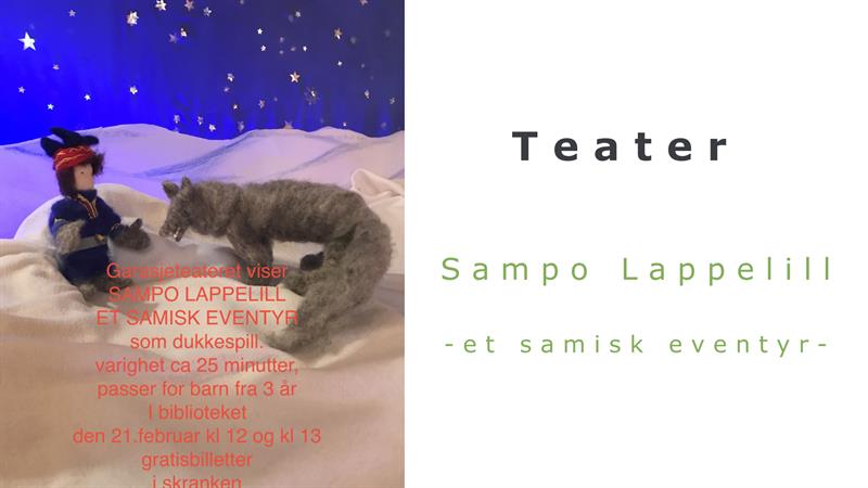 Ann Bjørke kommer med sitt "Garasjeteater" og setter opp to forestillinger denne lørdagen. Det er det samiske eventyret "Sampo Lappelill som vises som dukketeater.