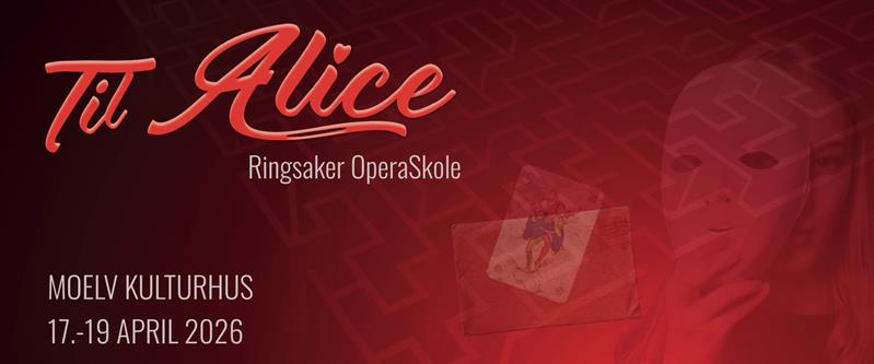 Til Alice er skrevet for Ringsaker Operaskole av Halvard Bjørkås. Dette er en bearbeidet versjon av forestillingen som operaskolen satte opp i 2022.